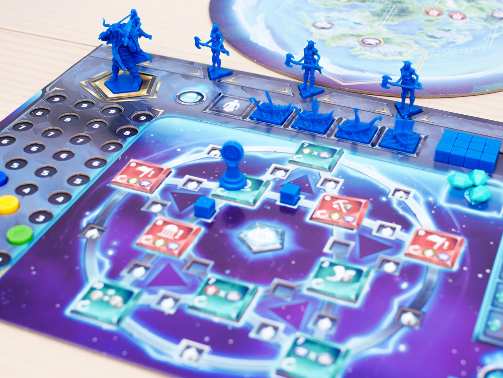 El juego cuenta con un innovador sistema de selección de acciones: un tablero de jugador en forma de estrella con distintas acciones en cada intersección. ¿Intentarás seguir el sendero de las estrellas para poner en juego a tus dioses rápidamente o preferirás realizar las acciones en el orden más conveniente para desarrollar mejor tu civilización? Cada elección es importante y puede llevarte a una victoria memorable… ¡o a una amarga derrota!