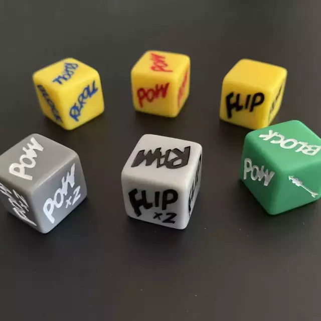 Libro 4: 1 Libreta de reglas 6 Dados de jefe 4 Figuras de cartón 38 Cartas 6 Fichas