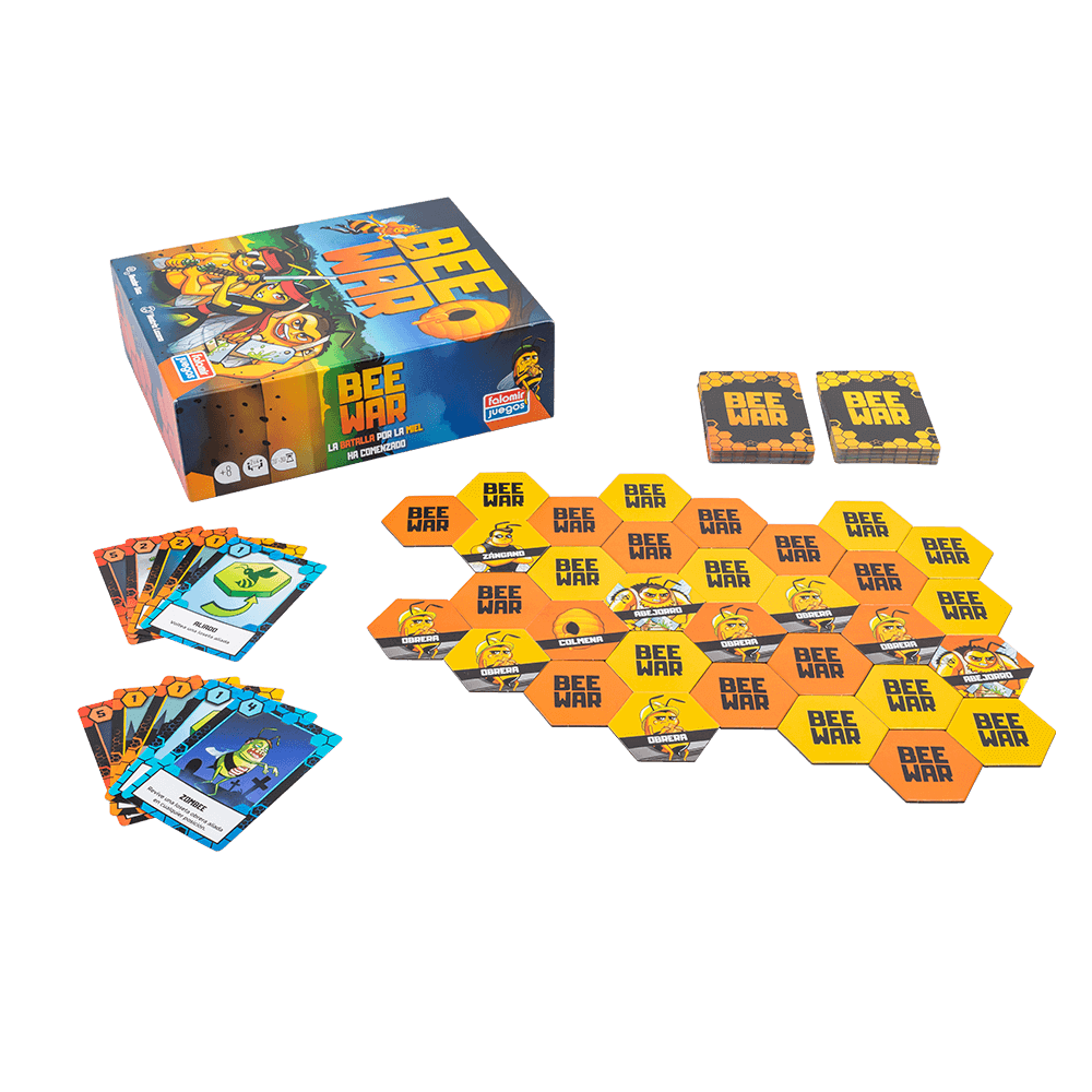 Descubre "Bee War", el emocionante juego de mesa, de losetas y cartas, que te sumerge en el desafiante mundo de las abejas. Diseñado para dos jugadores con la posibilidad de jugar en equipos de cuatro, este juego te invita a una aventura única donde la estrategia y la astucia determinarán el destino de tu colmena.