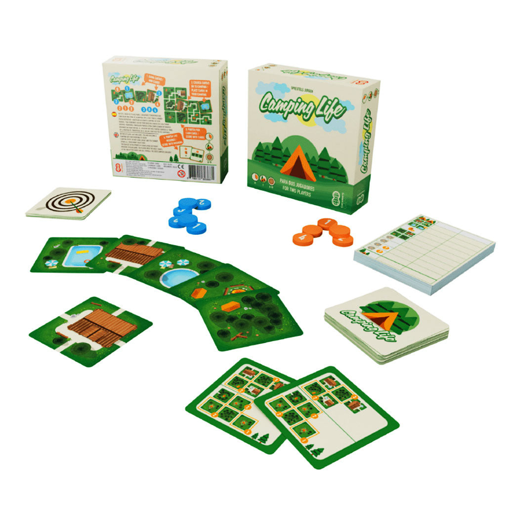 En este juego de pujas para 2 jugadores tendremos que construir una zona de acampada en la que todo el mundo pueda disfrutar!