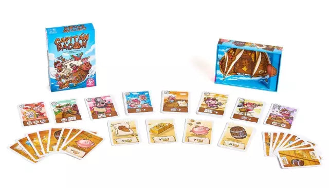 Capitán Bacon es un juego de gestión de mano en el que tendrás que conseguir diversos tesoros para ganar. Juega bien tus cartas para tu beneficio y para perjuicio de tus rivales y entierra tesoros para esconderlos o tratar de despistar.