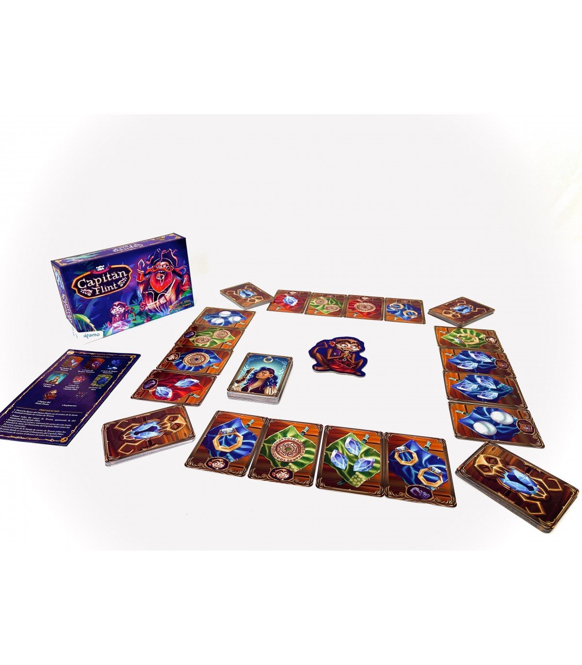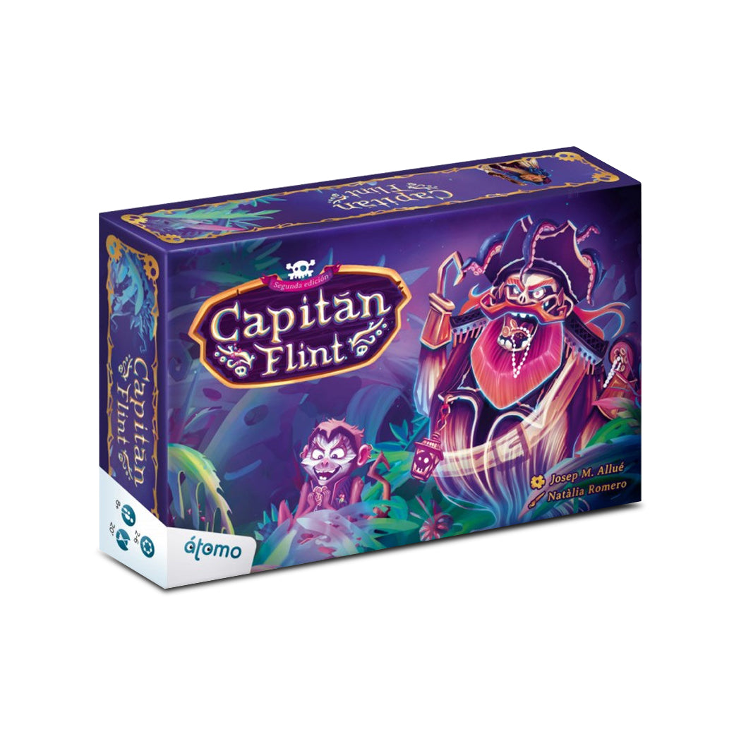 "Capitán Flint" es un frenético juego de mesa para niños, de cartas, para valientes y arrojados piratas. Atrapa al loro Parche para encontrar el tesoro, recoge el mayor número de joyas y monedas del cofre antes de que el fantasma del capitán Flint te atrape y conviértete en el pirata más rico.