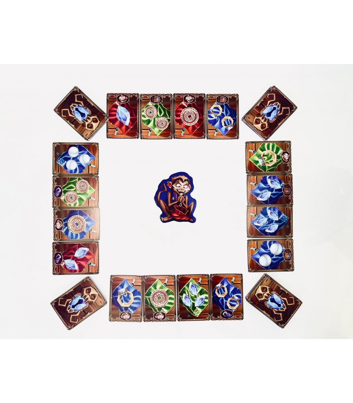 "Capitán Flint" es un juego familiar que hará las delicias de pequeños y mayores. Ágil, rápido y divertido este juego con motor de cartas nos convertirá en piratas ávidos de riqueza y botín. Deberás gestionar tus cartas pues solo dispondrás de cuatro sacos para llevarte el máximo número de joyas y monedas.