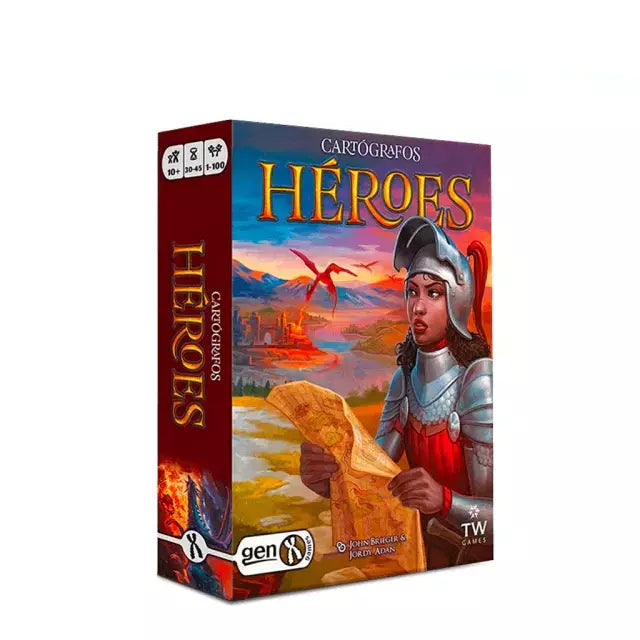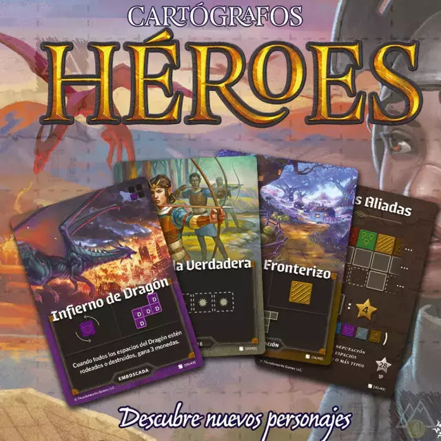 Cartografos Héroes es la secuela del juego de dibujo de mapas aclamado por la crítica, Cartógrafos. Incluye nuevas y diferentes hojas de mapas, cartas de puntuación, cartas de exploración y cartas de emboscada con habilidades únicas.