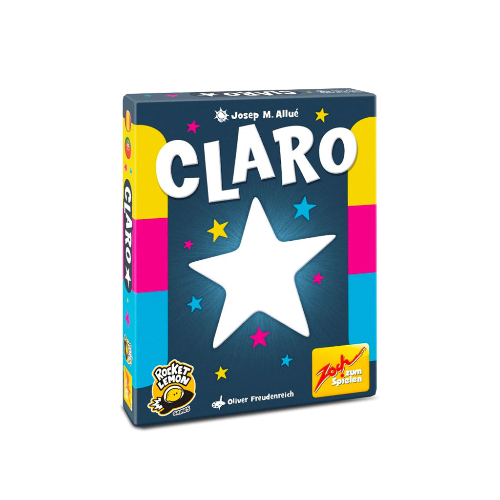 Claro es un filler de cartas en el que el objetivo es ser la última persona en colocar carta y ganar 3 estrellas. Lo más difícil de Claro es encontrar un juego más sencillo.