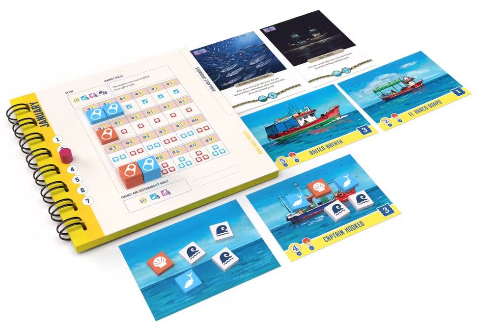 En Conservas, empiezas cada temporada de pesca con un barco y algo de dinero. El mar está representado por una bolsa con fichas de pescado y agua. Cada ronda, pescas en la bolsa y decides qué peces liberas para que se reproduzcan y cuáles merecen ser convertidos en conservas. Debes mantener un cuidado equilibrio para mantener el ecosistema. El juego viene con 12 escenarios, donde cada uno tiene unos objetivos financieros y de sostenibilidad únicos que debes cumplir. Además, cada escenario tiene sus propias reglas y estrategias para que sea rentable. En Conservas cada partida ofrece un rompecabezas diferente que deberás resolver.