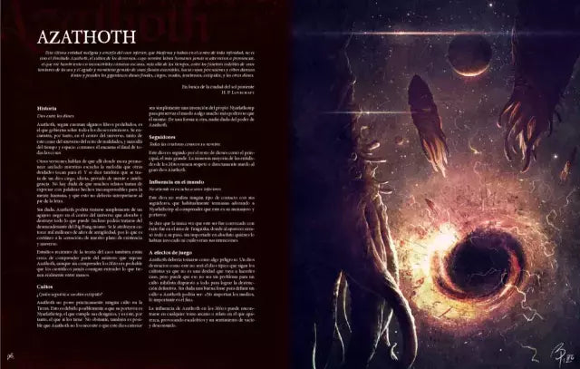 - Detallada ambientación sobre los Mitos de Cthulhu en la actualidad, incluyendo las criaturas y los dioses principales del terrorífico universo de H. P. Lovecraft, así como numerosos ejemplos de cultos.