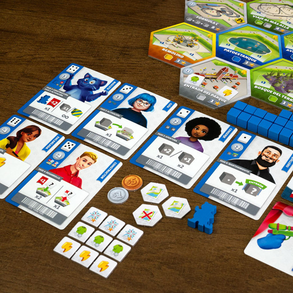 Los jugadores son los administradores del parque, tratando de crear el parque temático más exitoso en el área, ¡haciendo que sus clientes se suban a la mayor cantidad de atracciones posibles! Los dados del juego representan a los clientes, con fichas hexagonales que representan las atracciones de tu parque. Empleando una mecánica única de «cascada de dados» una vez que un cliente ha disfrutado de un paseo, su valor de dados se reduce, pero aún puede seguir disfrutando de más paseos en el parque temático hasta que su valor caiga a 0 cuando salga. Esto significa que cuanto más eficientemente puedas mover tus dados para activar las atracciones más gratificantes, ¡más puntos y dinero recibirás!