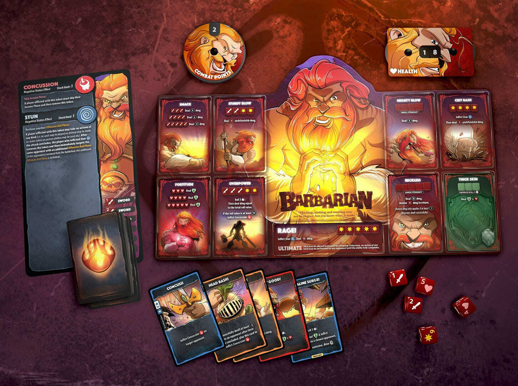 Es un juego de combate de ritmo rápido de 2 a 6 jugadores (1v1, 2v2, 3v3, 2v2v2, o libre). Elige entre una variedad de héroes que juegan y se sienten completamente distintos entre sí. Ataca a los oponentes y activa las habilidades tirando el conjunto único de cinco dados de tu héroe. Acumula puntos de combate y gástalos en cartas que tienen una gran variedad de efectos, como la concesión de mejoras permanentes para el héroe, la aplicación de efectos de estado y la manipulación directa de los dados (los tuyos, los de tu compañero o incluso los de tu oponente).