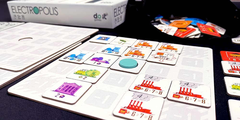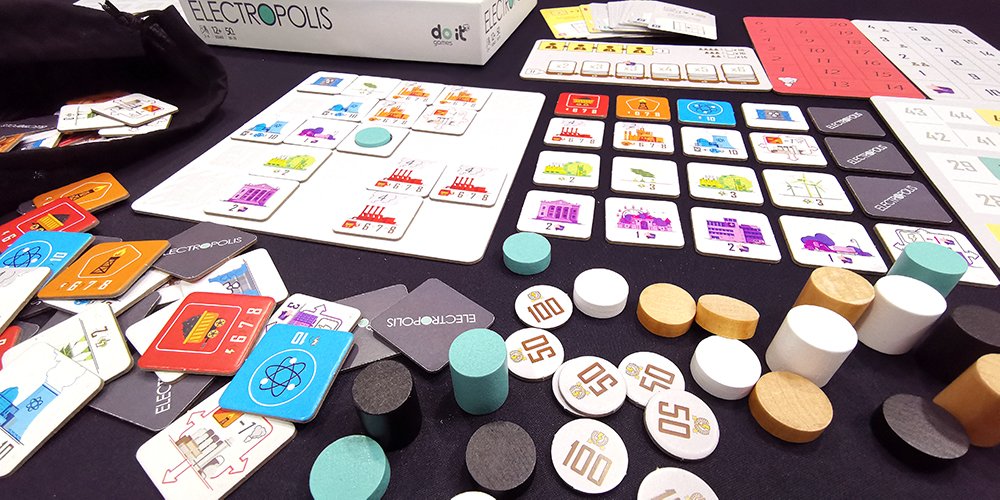 "Electropolis" es un original juego de mesa de estrategia y de colocación de losetas. Representas al alcalde de una metrópoli en expansión y debes actuar sobre la creciente demanda eléctrica de tu ciudad mientras intentas mantener el equilibrio entre la polución generada por las plantas energéticas y conseguir además el apoyo popular de los ciudadanos.