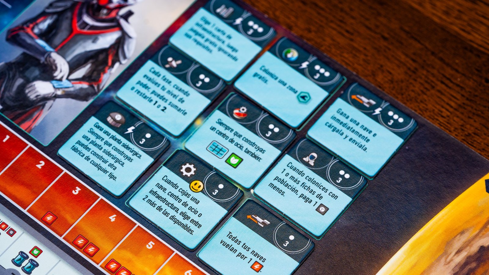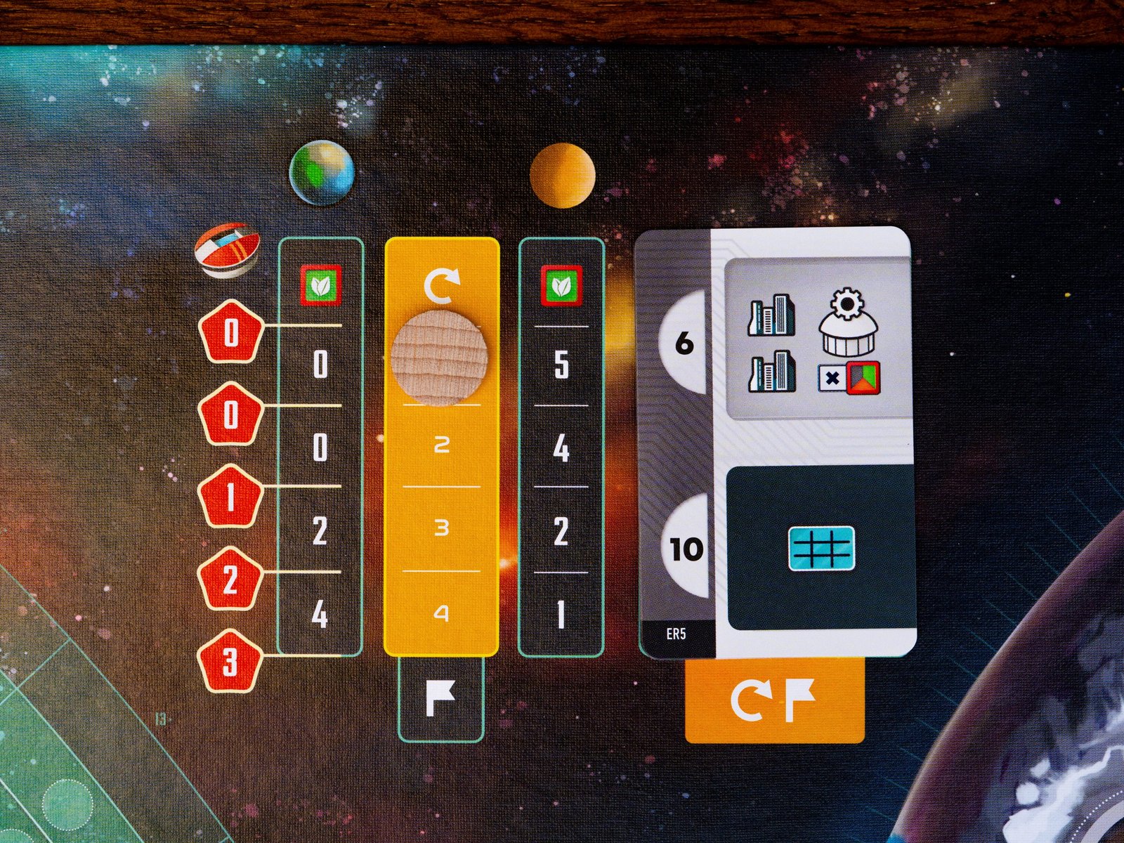 Si logras aumentar la producción de tres recursos al nivel ocho y tienes tres máquinas de realidad virtual en el nuevo planeta, ganas la partida. De lo contrario, los jugadores comparan puntuaciones después de cuatro rondas.