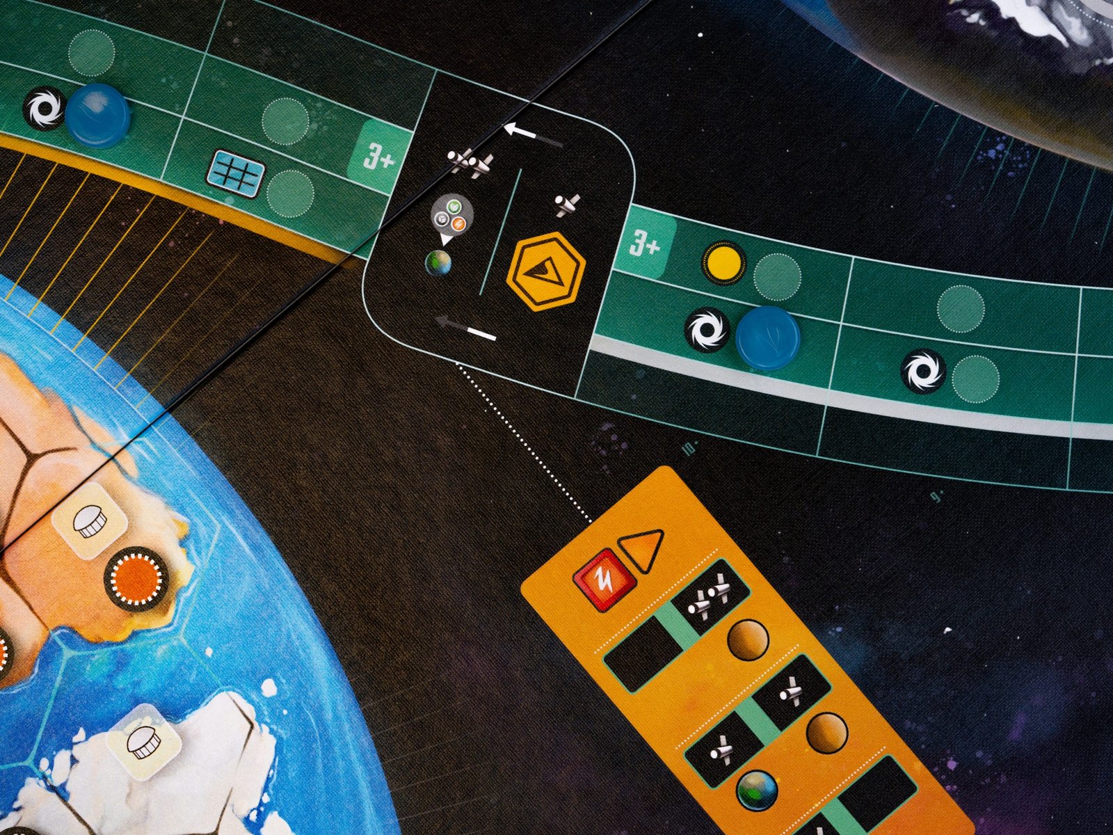Para hacer esto, eliges acciones del tablero de jugador; y la variante experto añade cartas a tu mano que te permiten elegir acciones adicionales y combinarlas. Cada acción tiene su propio valor y la suma de estas acciones es importante para obtener una bonificación al final de la ronda. Además, los jugadores mueven sus marcadores a lo largo de la pista orbital según el valor de sus acciones.