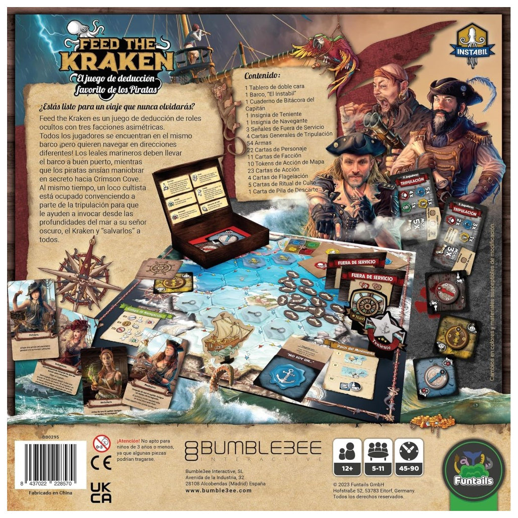 En Feed the Kraken cada jugador recibe en secreto el papel de Marinero, Pirata o Líder de Culto y utiliza todos los medios disponibles para trazar el rumbo del barco hacia el destino de su facción. En cada turno, el barco navegará en una de las tres direcciones posibles… pero ¿cuál será?…