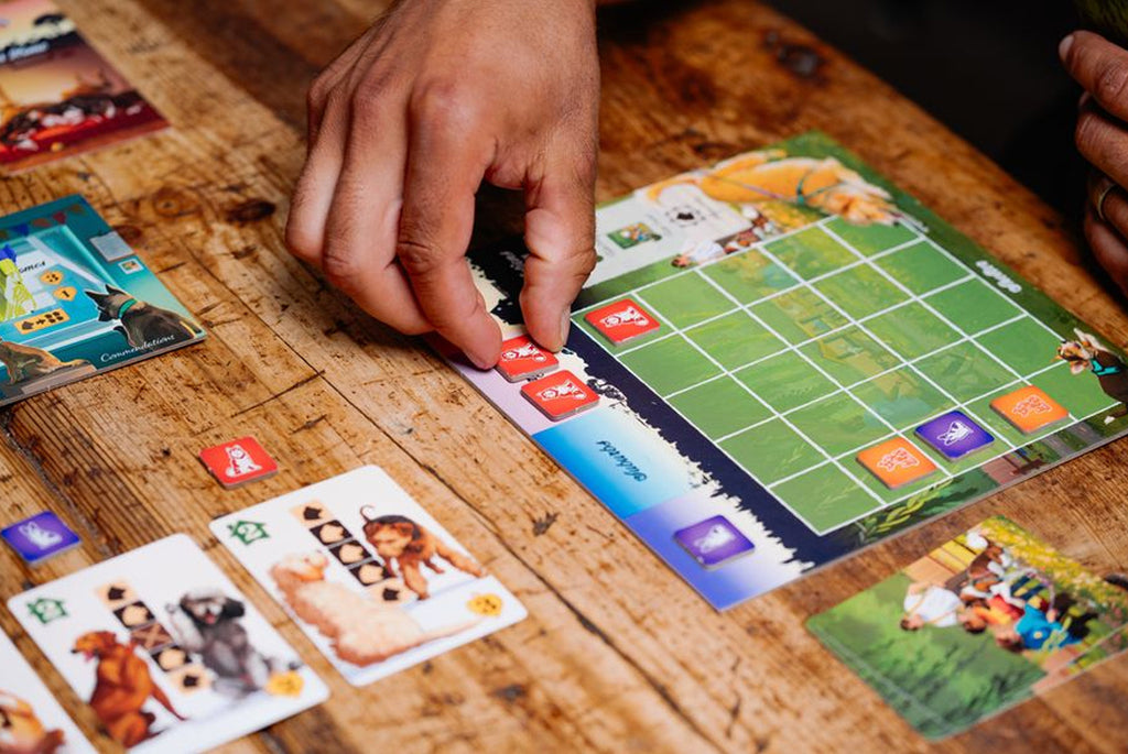 Usando una combinación de colocación de losetas y colección de conjuntos, tú y yus amigos asumís el papel de trabajadores del refugio. Túrnate para traer perros a tu refugio, completar tarjetas de entrenamiento y emparejar cachorros con nuevas familias. Estarás compitiendo por valiosos elogios en el refugio, además de ganar reputación por entrenar y reubicar a los perros a tu cuidado. Al final de la partida, ¡gana el trabajador del refugio con más reputación!