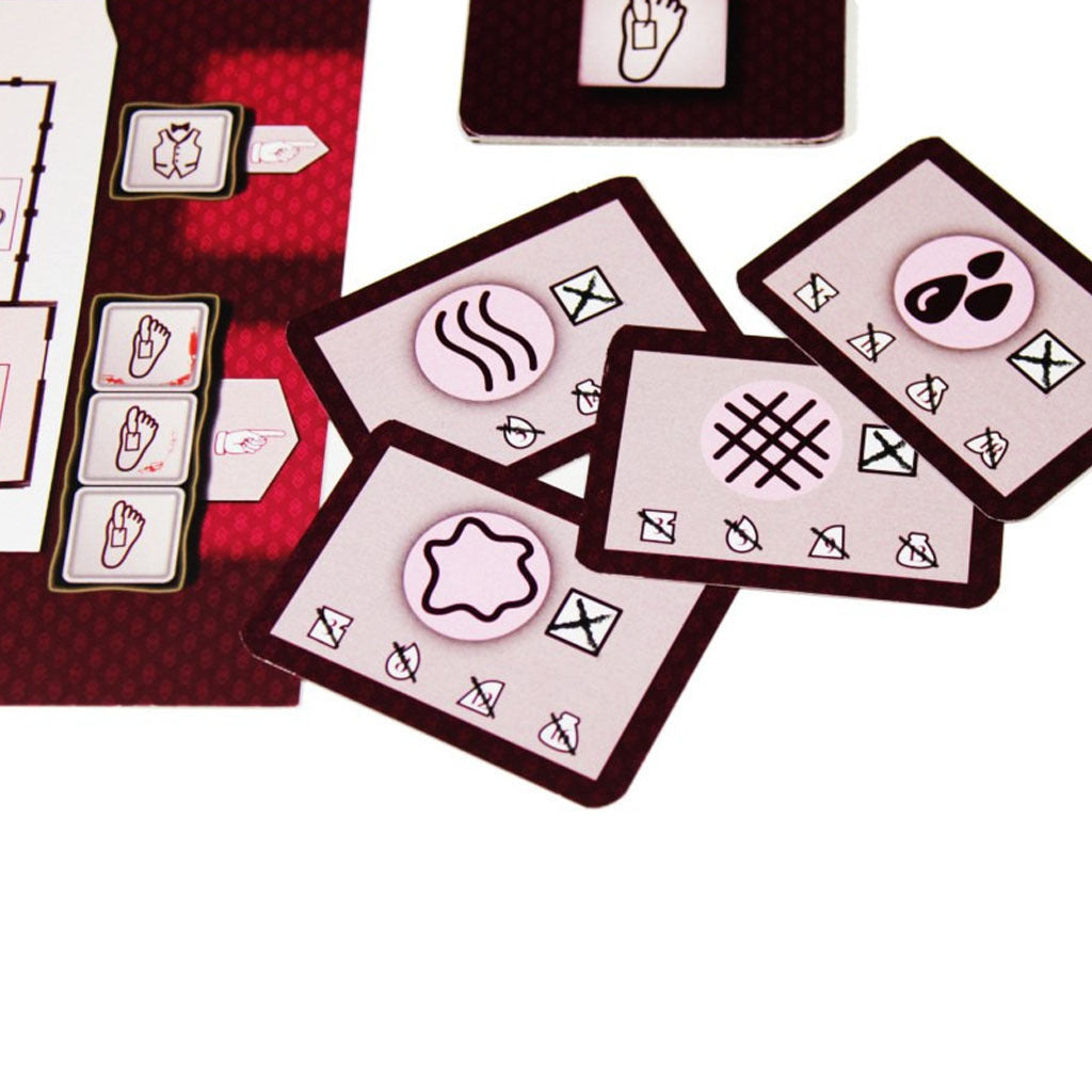- Figuras troqueladas de los sospechosos que ayudarán en tus investigaciones.