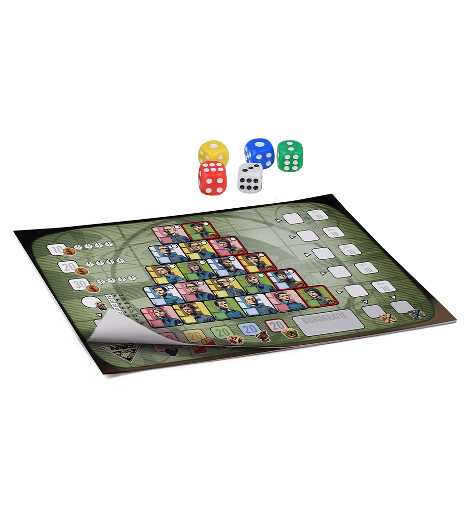 Tira los cinco dados que determinarán la competencia de los miembros disponibles. Asigna el valor de un dado de color o combínalo con el dado blanco para determinarlo. Los dados con el mismo valor no estarán disponibles en esta ronda para el resto de los participantes.