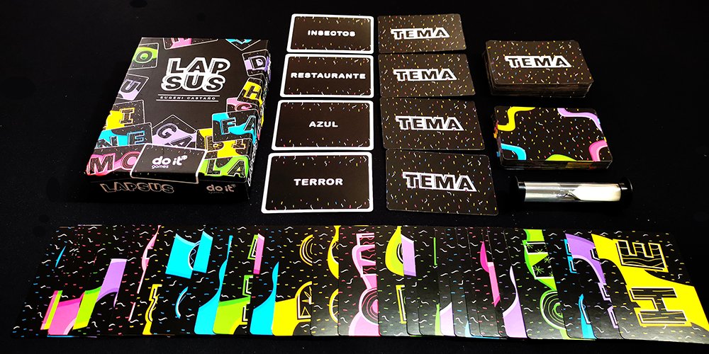 "Lapsus" es un juego de mesa cooperativo (con una variante competitiva) en el que los jugadores, por turnos, realizan la función de intérpretes relacionando las palabras creadas por sus compañeros con las temáticas presentes sobre la mesa.