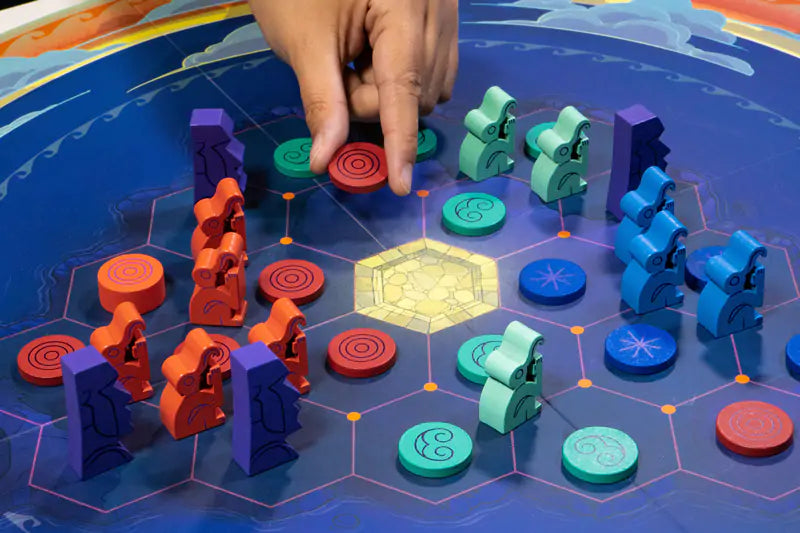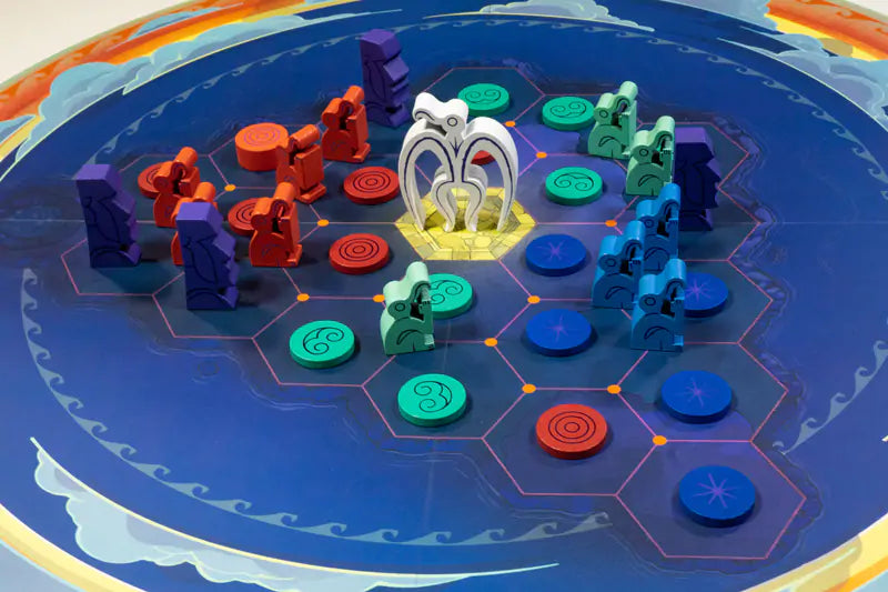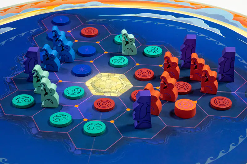 Durante la fase ceremonial, si controlas un territorio y controlas todos los territorios circundantes y tienes tu ficha de jefe y al menos Tangata Manu en estos territorios, entonces devuelves las fichas de este territorio rodeado a tu reserva y colocas un Moai en este territorio en su lugar. Un territorio con un Moai en él se considera controlado por todos los clanes, y un moai no se puede quitar del tablero de juego.