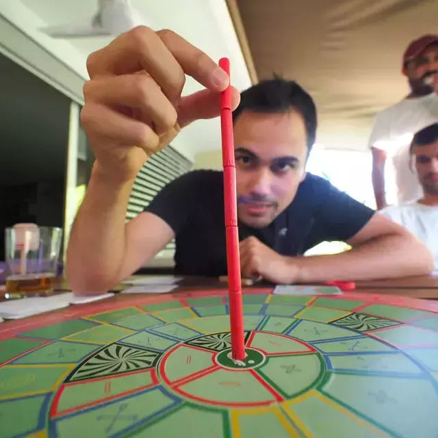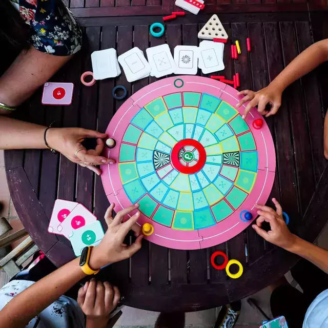 Empezado desde la casilla de salida de tu color, golpea el disco e intenta caer en la casilla que más te interesa.