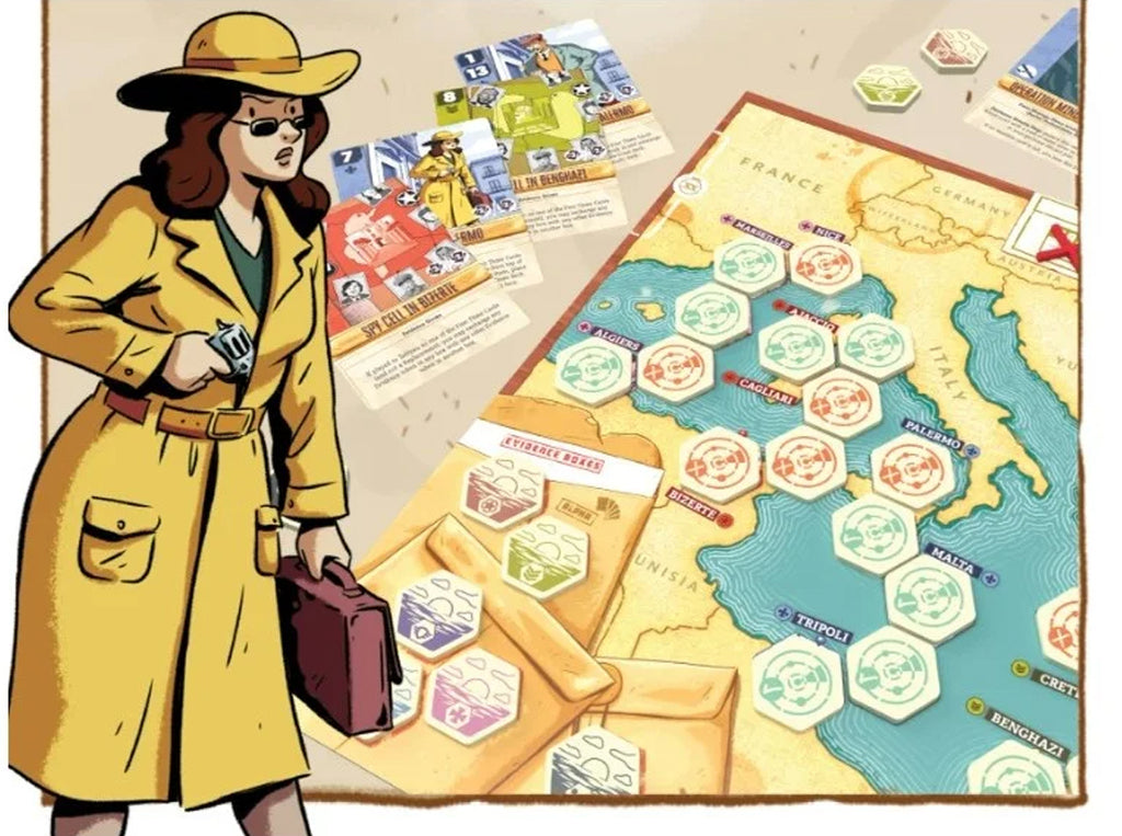 Así que bluffear y sembrar desinformación es más importante que tener suerte con la mano de cartas. Además, cada jugador compite por otra ficha de evidencia al tener la mayoría de iconos de incursiones o reconocimiento en sus cartas.