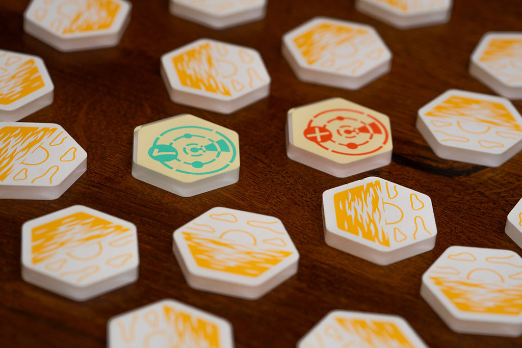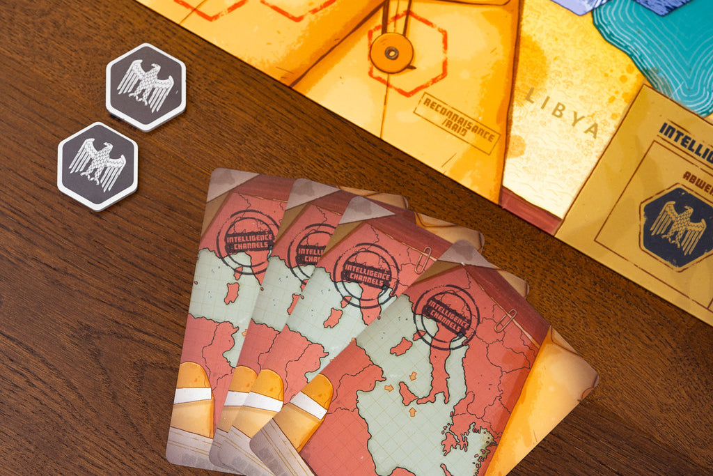 Así que bluffear y sembrar desinformación es más importante que tener suerte con la mano de cartas. Además, cada jugador compite por otra ficha de evidencia al tener la mayoría de iconos de incursiones o reconocimiento en sus cartas.