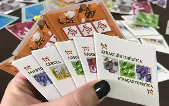 Después, si lograste cumplir las condiciones necesarias, puedes construir estructuras especiales como un Resort, un Barrio Cerrado o un Acuario y poblar Papertown con tus ciudadanos. ¡Quién coloque primero todos sus ciudadanos en la ciudad será el ganador!