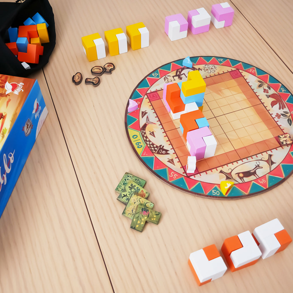 Pueblo es un juego de tablero en el que, junto con los demás jugadores, tendréis que trabajar para crear un hogar poderoso para el jefe de la tribu. Tendrás que demostrar que eres el mejor artesano de la comarca y, de esta forma, podrás convertirte en un auténtico maestro constructor. ¡Ten cuidado con el Cacique! Si consigue ver tus piedras de marca, serás penalizado.
