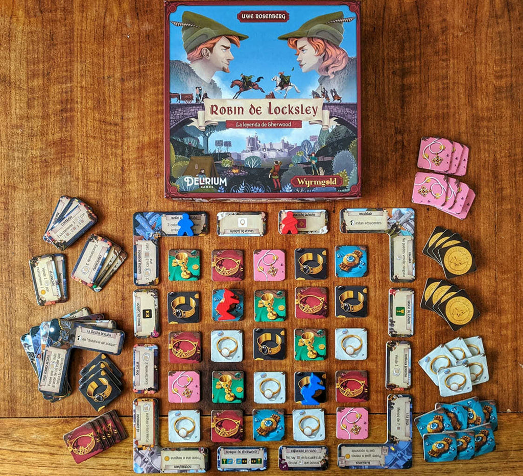 Inglaterra atraviesa su época más oscura con el secuestro del Rey Ricardo en Tierra Santa. Su corrupto hermano Juan traiciona al país aliándose con los normandos y el pueblo sufre su tiranía. Revive la leyenda de Robin Hood en este apasionante juego de set collection y tablero modular para dos jugadores del aclamado diseñador Uwe Rosenberg. Hazte con valiosas joyas que te permitan cumplir las tareas de las misiones y avanza en el track para ser el primero en llegar a la meta y liberar al rey. Robin de Locksley se juega en partidas de 30 minutos cargadas de tensión, adelantamientos explosivos, planificación visual y ganas de revancha…
