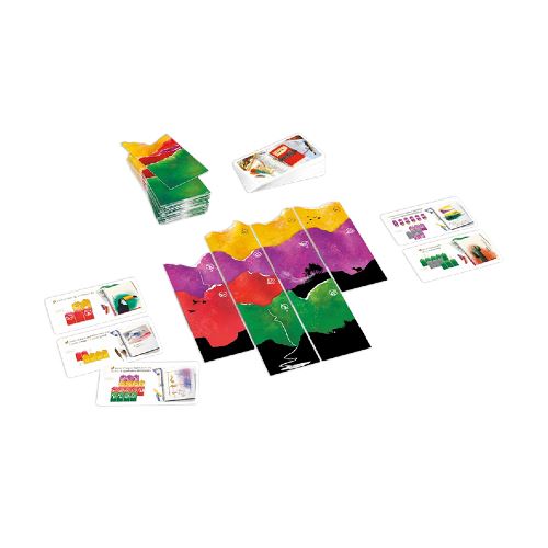 A lo largo de 8 rondas iras creando un paisaje común colocando cartas de distintos colores y formas, siempre respetando reglas que te obligan a pensar bien cada movimiento.