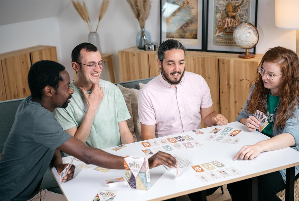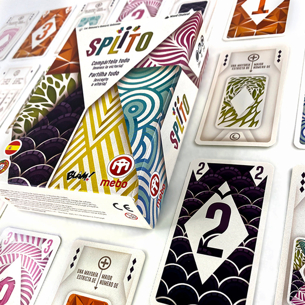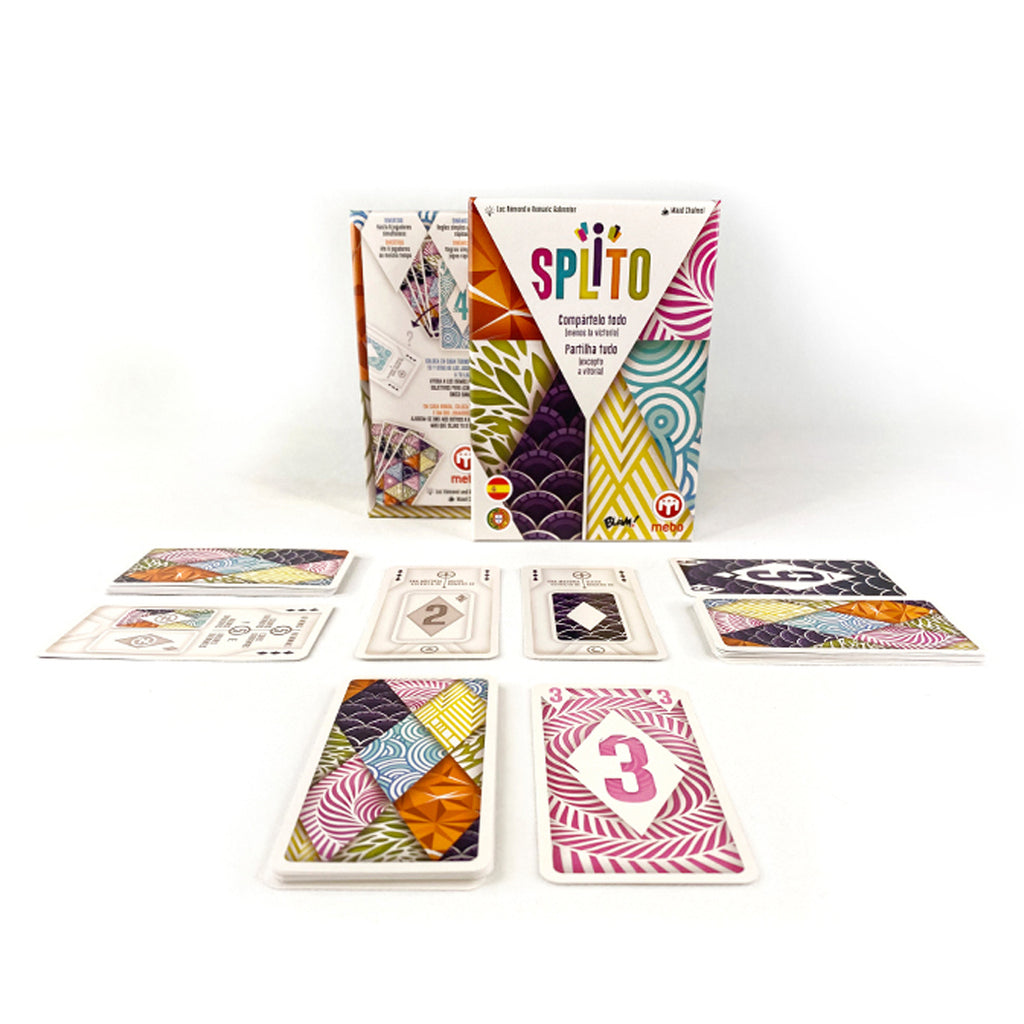 "Splito" es un juego de cartas, divertido y rápido, basado en la mecánica de draft. En cada turno coloca una carta entre tú y tu vecino a la izquierda... ¡o a la derecha! Ayúdaos unos a otros para completar los objetivos, pero deberéis ser los más inteligentes para ser los únicos en ganar.