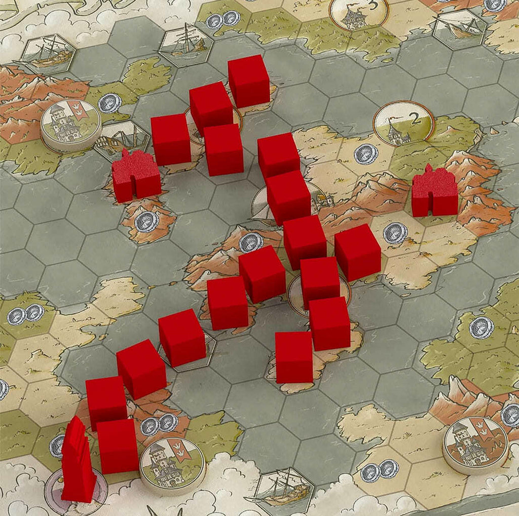 Aunque el reino es floreciente, sus mapas no se han actualizado en mucho tiempo y sus grandes ciudades han perdido el contacto entre sí. Con tu equipo de exploradores viajarás por mares agitados, montañas majestuosas, vastos desiertos y exuberantes praderas para establecer rutas comerciales entre capitales, visitar torres de descubrimiento ya olvidadas y encontrar las nuevas aldeas que han surgido en este tiempo.