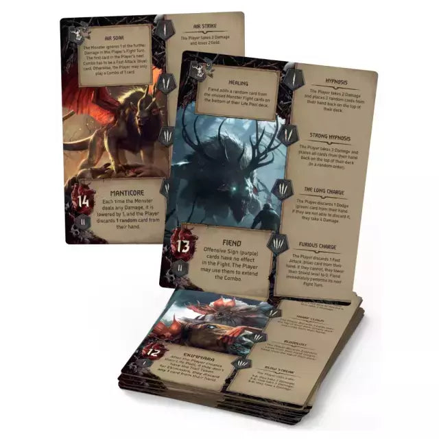Adéntrate más en el universo de The Witcher con The Witcher Monster Trail ¡Añade nuevos módulos al juego para hacerlo aún más emocionante! Lucha como una leyenda. ¡Usa las nuevas habilidades de 40 cartas de Acción. Avanzada para crear combos aún más poderosos!