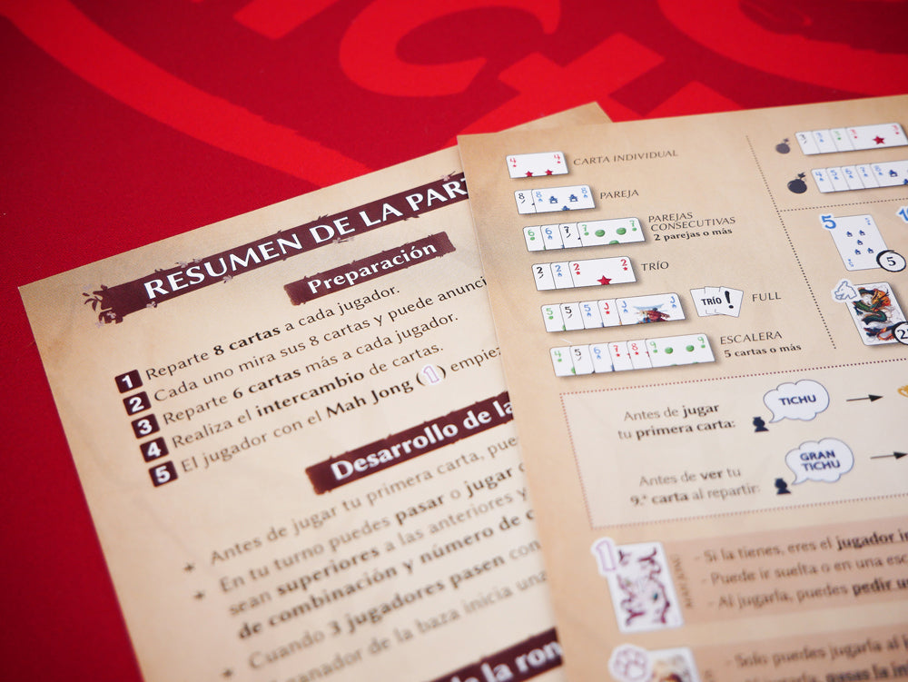 En "Tichu" los jugadores juegan por parejas y deben descartarse de su mano antes que los otros jugadores. Deberás ayudar a tu compañero para conseguir puntos y ganar bazas, con el objetivo de quedarte sin cartas en la mano.