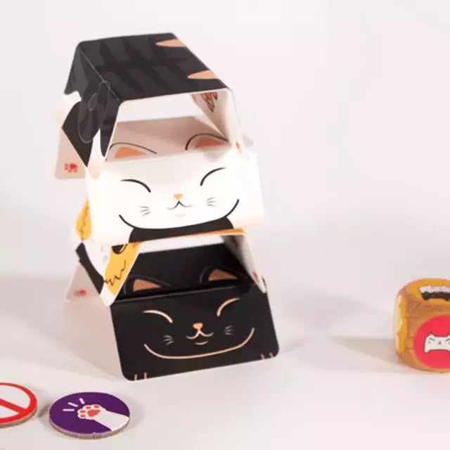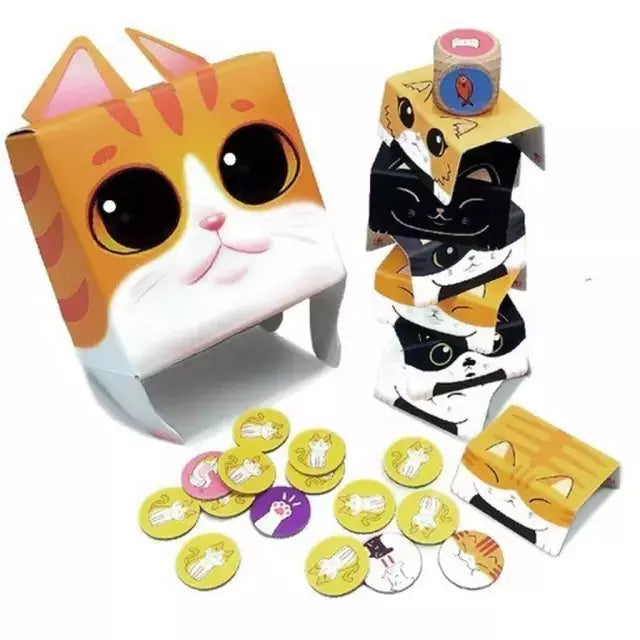 Torre de Gatos es un juego de habilidad a partir de tan solo 4 años en el que se deben colocar unas cartas de gatos dobladas formando pequeñas cajas. Ganará la primera persona en deshacerse de su mano de cartas de gato.