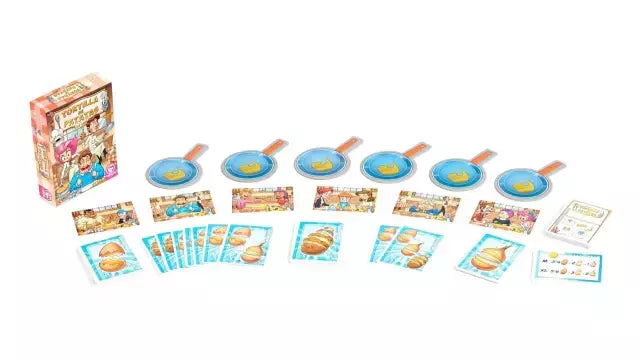 Tortilla de Patatas es un juego de gestión de la mano y memoria en el que tendrás que ir preparando tortillas en sartenes de forma que solo el último ingrediente sea visible. En el momento en el que consideres que una tortilla está completa, elegirás una carta de puntuación (comensal/es) y se la servirás. Pero, ¡cuidado! Las tortillas deben ser perfectas. Si te confundes con la proporción de ingredientes, ¡perderás puntos!