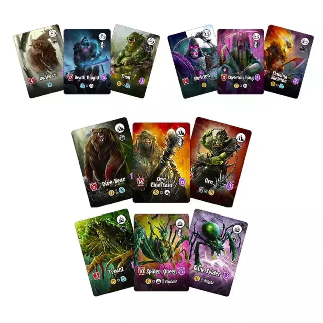 1 Reglamento 108 Cartas de ciudadano 48 Cartas de monstruo 24 Cartas de dominio 10 Cartas de duque 25 Cartas básicas 32 Separadores 175 Fichas de Madera 14 Fichas de cartón 2 Dados |